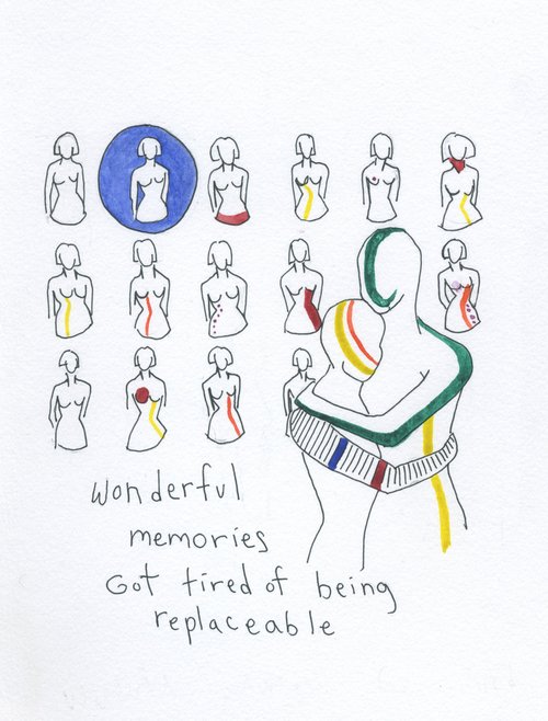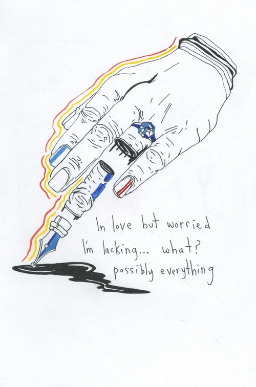 #in10wordsorless is a project I did where I requested of my Instagram following to submit "your most recent relationship: in 10 words or less" and then I'd illustrate it according to my interpretation of their blurb. I received over 500 submissions and illustrated + posted them every day for the better part of a year.